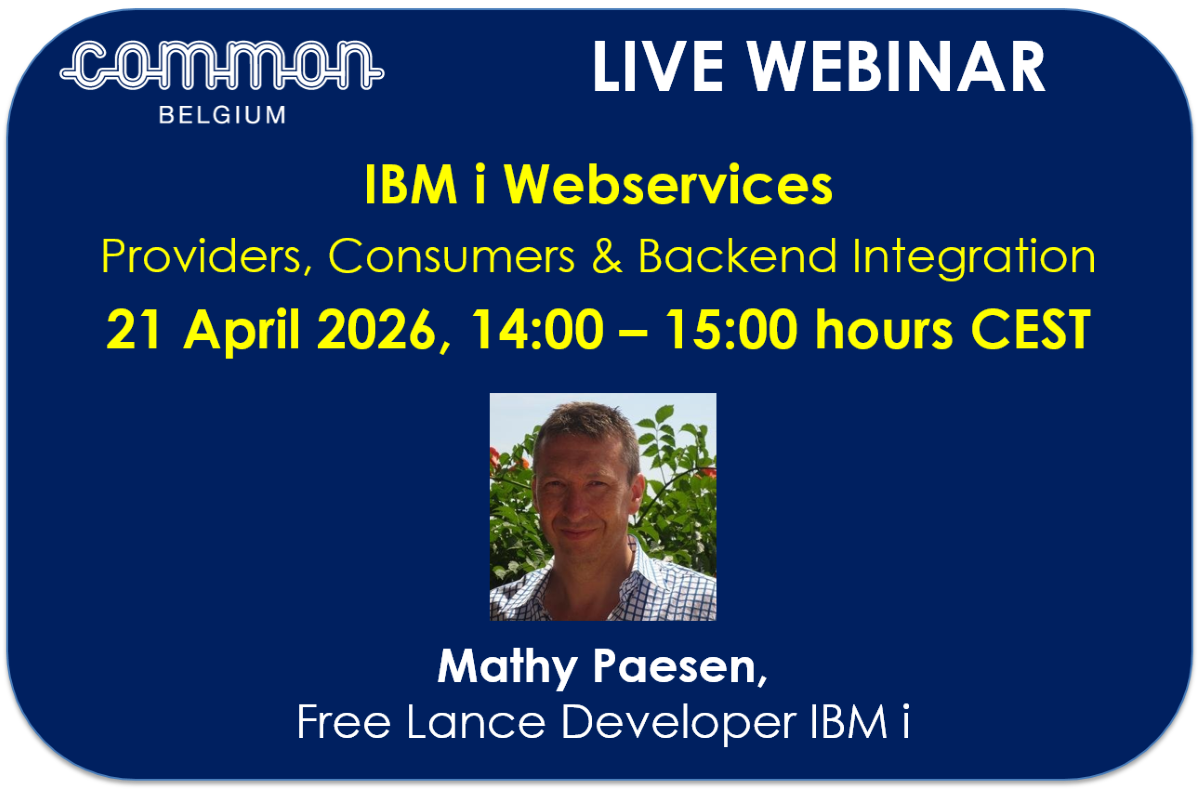 By joining COMMON Belgium, you become part of an inspiring journey – one that embraces innovation, fosters collaboration, and empowers you to shape the future of technology. Explore our initiatives, events, and membership benefits at www.common.be, and take your place at the forefront of IBM i driven transformation. Together, we propel a global community united by shared knowledge, collective vision, and a relentless pursuit of excellence.